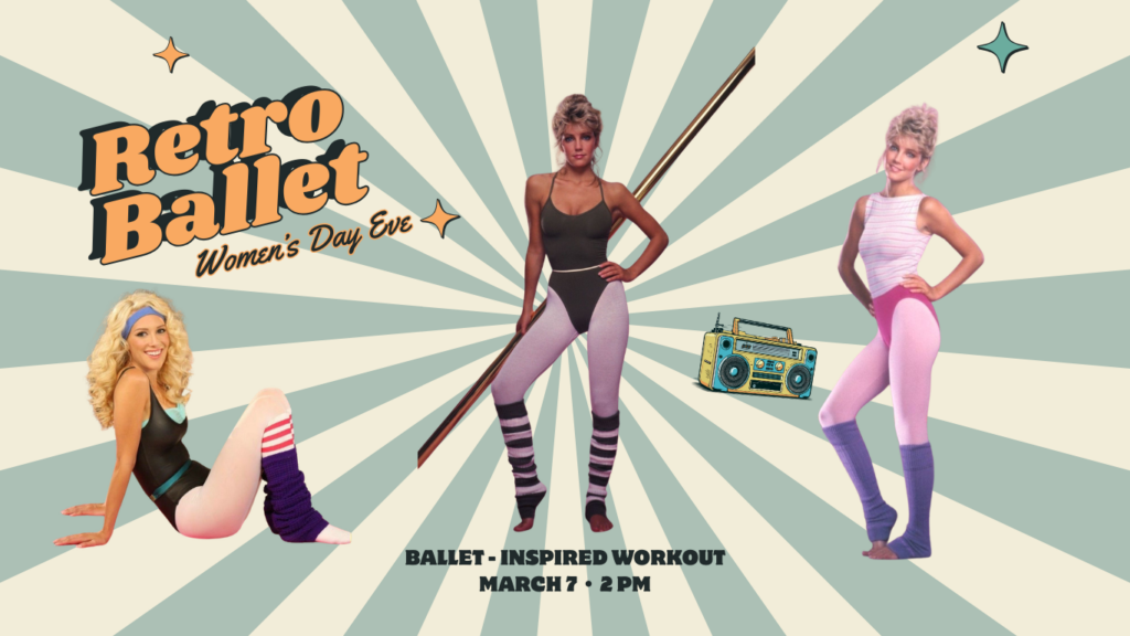 Retro Ballet – Women’s Day Eve este un antrenament full body, inspirat din vibe-ul anilor ’80–’90, reinterpretat în stilul Dance Room.